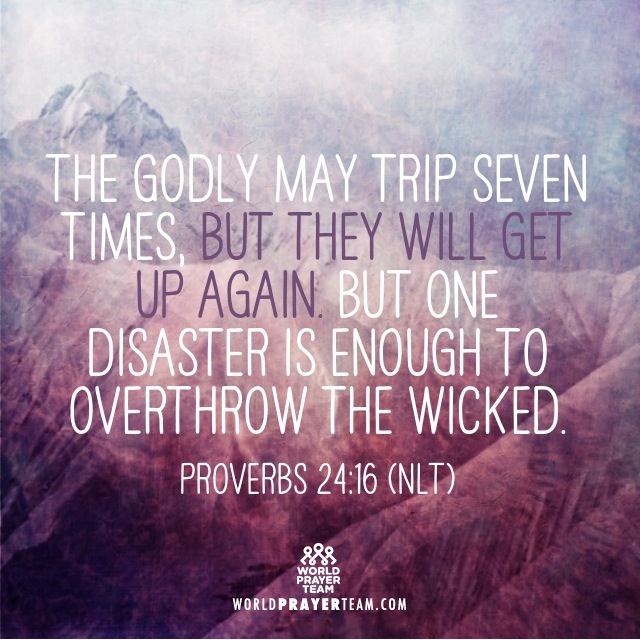 Verses 11 – 14 speak of the responsibility of the wise to look out for and rescue those headed for destruction. One cannot claim ignorance and be absolved of responsibility for saving others. In the same way, believers must seek the wisdom of God and use that wisdom to witness to the lost to save them from sudden and utter destruction. Conversely, in verses 15 – 16, Solomon warns the evil not to lie in wait to harm or steal from the righteous. Even if they fall numerous times, the righteous will rise again and the wicked shall fall. It is a losing game! In verses 17 & 18, the writer says, “Do not rejoice over the demise of your enemies.” Even when evil people fall, it is not Godly to mock them or rejoice over their pain or death. The evil face an eternal punishment, therefore the righteous should mourn for them, not rejoice. In 19 & 20, Solomon tells the righteous that they should not worry about evildoers, though, because they will not win. Their riches are not worth envy, for they will disappear. Finally, in 21 & 22, the reader is instructed to respect and obey the Lord first, and the king second, for they can bring great ruin to their enemies. Be on the winning side!