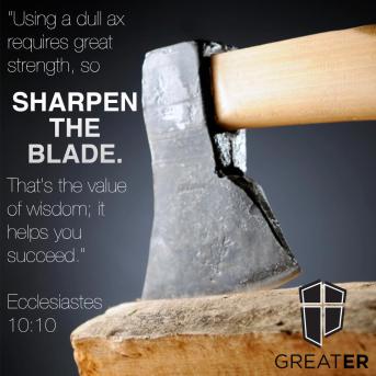 Be careful and be prepared for dangers and weariness. The Preacher warns against carelessness on all fronts. The imagery that demonstrates this the most visibly is the dull ax. Using a dull ax makes the job longer and harder. In every area of life, sharpen your ax so that you can cut through the work at hand more easily and more efficiently! You sharpen your ax in many ways by acquiring wisdom.