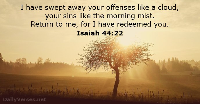 22 I have blotted out, like a thick cloud, your transgressions,