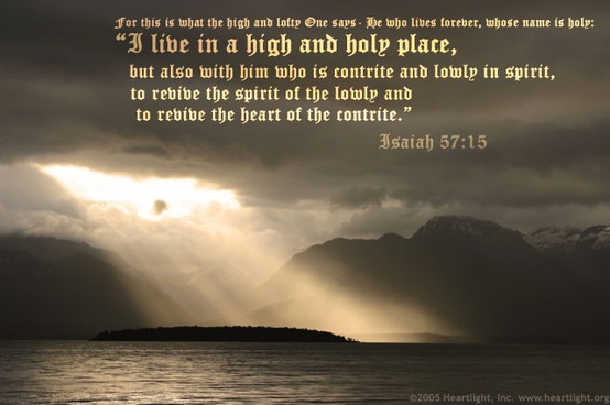 15 For thus says the High and Lofty One Who inhabits eternity, whose name is Holy: “I dwell in the high and holy place, With him who has a contrite and humble spirit, To revive the spirit of the humble, And to revive the heart of the contrite ones.