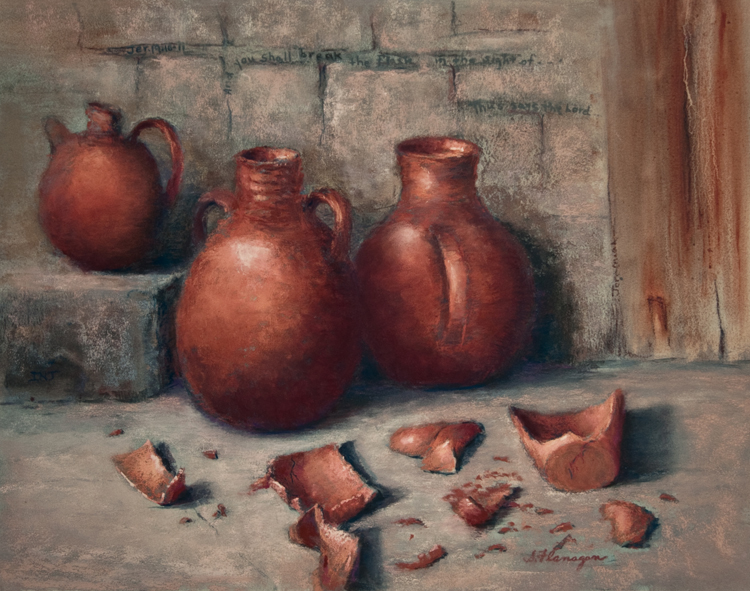 The image of the potter’s vessel signifies that Judah will be so utterly broken that it cannot be made whole again. Their houses will be defiled, and it is all because of their idolatry and burning their children in worship of Molech.