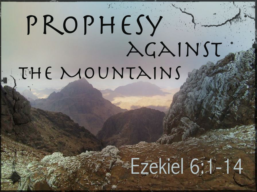 6:1 Now the word of the Lord came to me, saying: 2 “Son of man, set your face toward the mountains of Israel, and prophesy against them, 3 and say, ‘O mountains of Israel, hear the word of the Lord God! Thus says the Lord God to the mountains, to the hills, to the ravines, and to the valleys: “Indeed I, even I, will bring a sword against you, and I will destroy your high places. 4 Then your altars shall be desolate, your incense altars shall be broken, and I will cast down your slain men before your idols. 5 And I will lay the corpses of the children of Israel before their idols, and I will scatter your bones all around your altars.