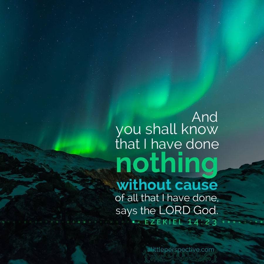 21 For thus says the Lord God: “How much more it shall be when I send My four severe judgments on Jerusalem—the sword and famine and wild beasts and pestilence—to cut off man and beast from it? 22 Yet behold, there shall be left in it a remnant who will be brought out, both sons and daughters; surely they will come out to you, and you will see their ways and their doings. Then you will be comforted concerning the disaster that I have brought upon Jerusalem, all that I have brought upon it. 23 And they will comfort you, when you see their ways and their doings; and you shall know that I have done nothing without cause that I have done in it,” says the Lord God.