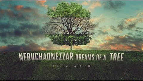 This dream speaks of a great tree in the earth, providing shade for animals, and living places for birds. It is beneficial to many, and grand in stature. But then a holy one comes down and orders it to be cut down. Warn the animals and birds, then cut it down to a stump and bind with with a bronze band. The dream then seems to shift or transition to a discussion of a mighty one being humbled to eat grass with the animals and feel the dew upon him in the mornings. He will have the heart of a beast and live this way for seven years. This would happen to remind all that God rules on the earth. Nebuchadnezzer then commissions Daniel (Belteshazzar) to interpret the dream.