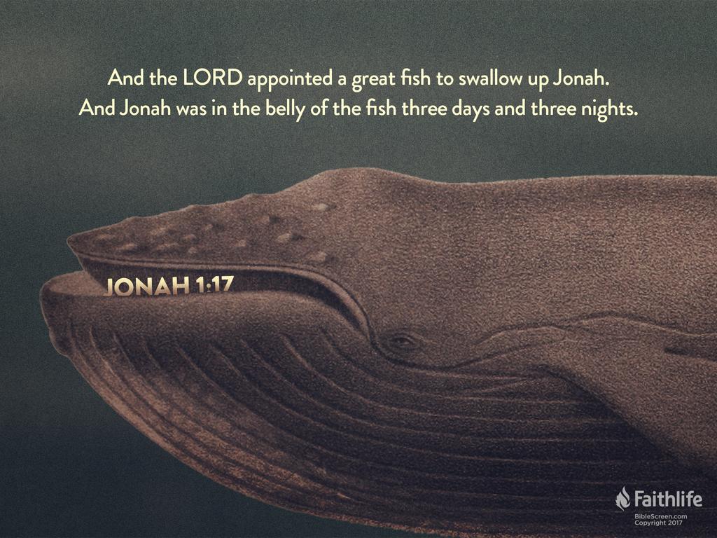 17 Now the Lord had prepared a great fish to swallow Jonah. And Jonah was in the belly of the fish three days and three nights.