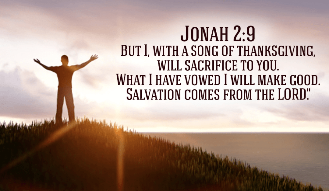 In his fleeting moments of life, Jonah cried unto the Lord with a confession of the futility of idolatry, perhaps even his own form of idolatry where he thought he was God and could refuse the Lord’s commands. He then vows to sacrifice to God with thanksgiving and pay his debt to the Lord. Finally, he acknowledges the Lordship of Yahweh as the source of salvation. This is a picture of Jonah’s repentance and willingness to obey. As the reader will notice later, he still did not agree with the Lord giving Ninevah an opportunity to repent, but her does repent for his disobedience.