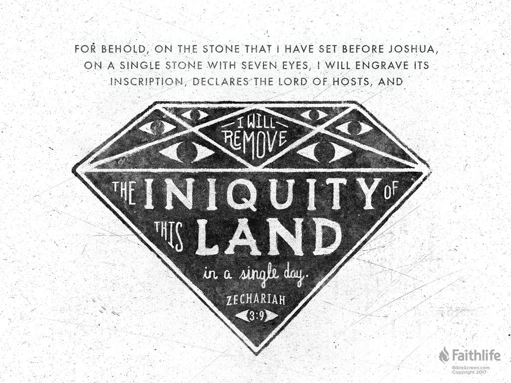 This eschatological statement of restoration is tied to the image of a stone with seven eyes laid before Joshua (who respresents the priesthood and people of God). The seven eyes could be literal eyes, signifying God’s oversight of His people. However, it could describe seven facets of a precious stone. The Hebrew word for eye here could also be translated fountain, signifying the cleansing of God through this stone. Either way, this stone signifies the cleasing and restoration of God’s earthly kingdom through a holy priesthood and a willing and obedient people. With this restoration will come prosperity and peace.