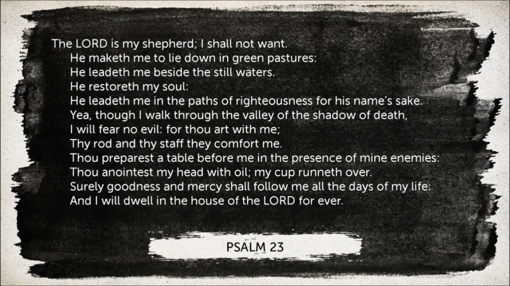 The Lord is my shepherd; I shall not want. He makes me to lie down in green pastures…