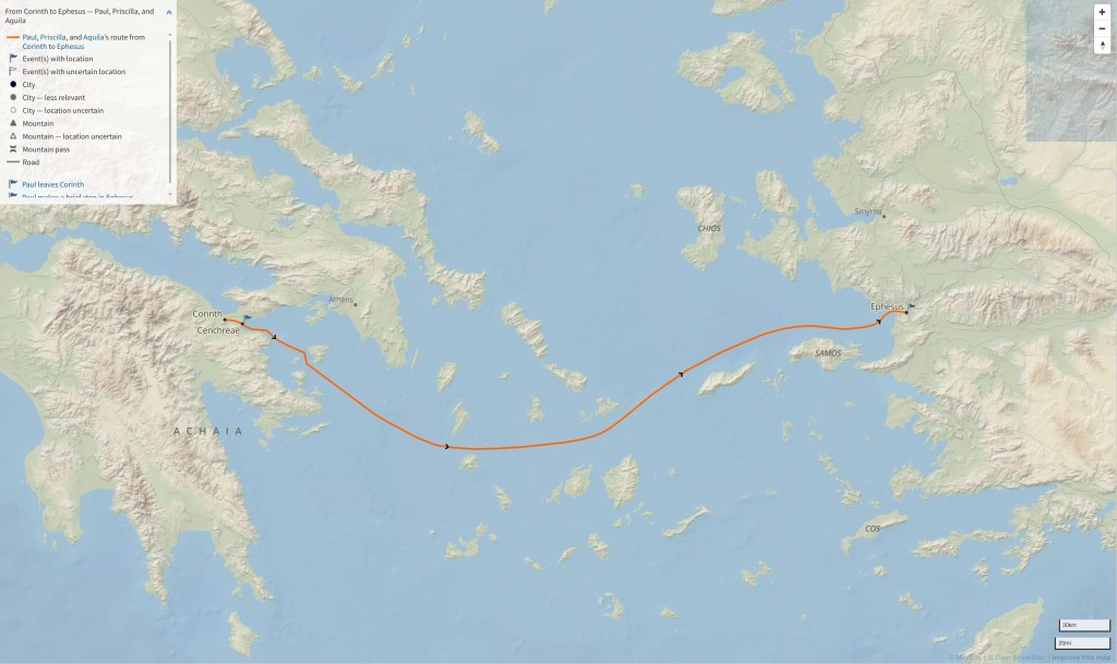 18 So Paul still remained a good while. Then he took leave of the brethren and sailed for Syria, and Priscilla and Aquila were with him. He had his hair cut off at Cenchrea, for he had taken a vow. 19 And he came to Ephesus, and left them there; but he himself entered the synagogue and reasoned with the Jews. 20 When they asked him to stay a longer time with them, he did not consent, 21 but took leave of them, saying, “I must by all means keep this coming feast in Jerusalem; but I will return again to you, God willing.” And he sailed from Ephesus.