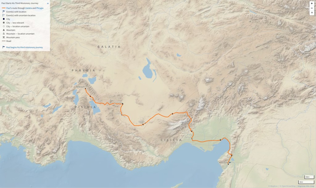 22 And when he had landed at Caesarea, and gone up and greeted the church, he went down to Antioch. 23 After he had spent some time there, he departed and went over the region of Galatia and Phrygia in order, strengthening all the disciples.