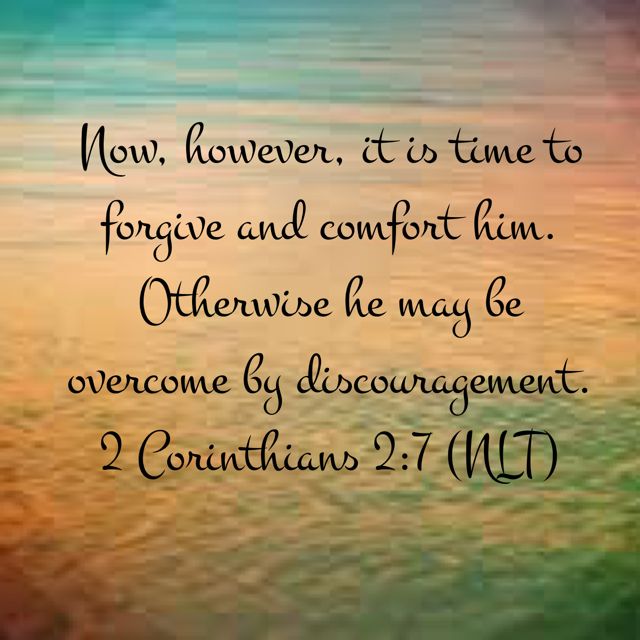 5 But if anyone has caused grief, he has not grieved me, but all of you to some extent—not to be too severe. 6 This punishment which was inflicted by the majority is sufficient for such a man, 7 so that, on the contrary, you ought rather to forgive and comfort him, lest perhaps such a one be swallowed up with too much sorrow. 8 Therefore I urge you to reaffirm your love to him. 9 For to this end I also wrote, that I might put you to the test, whether you are obedient in all things. 10 Now whom you forgive anything, I also forgive. For if indeed I have forgiven anything, I have forgiven that one for your sakes in the presence of Christ, 11 lest Satan should take advantage of us; for we are not ignorant of his devices.