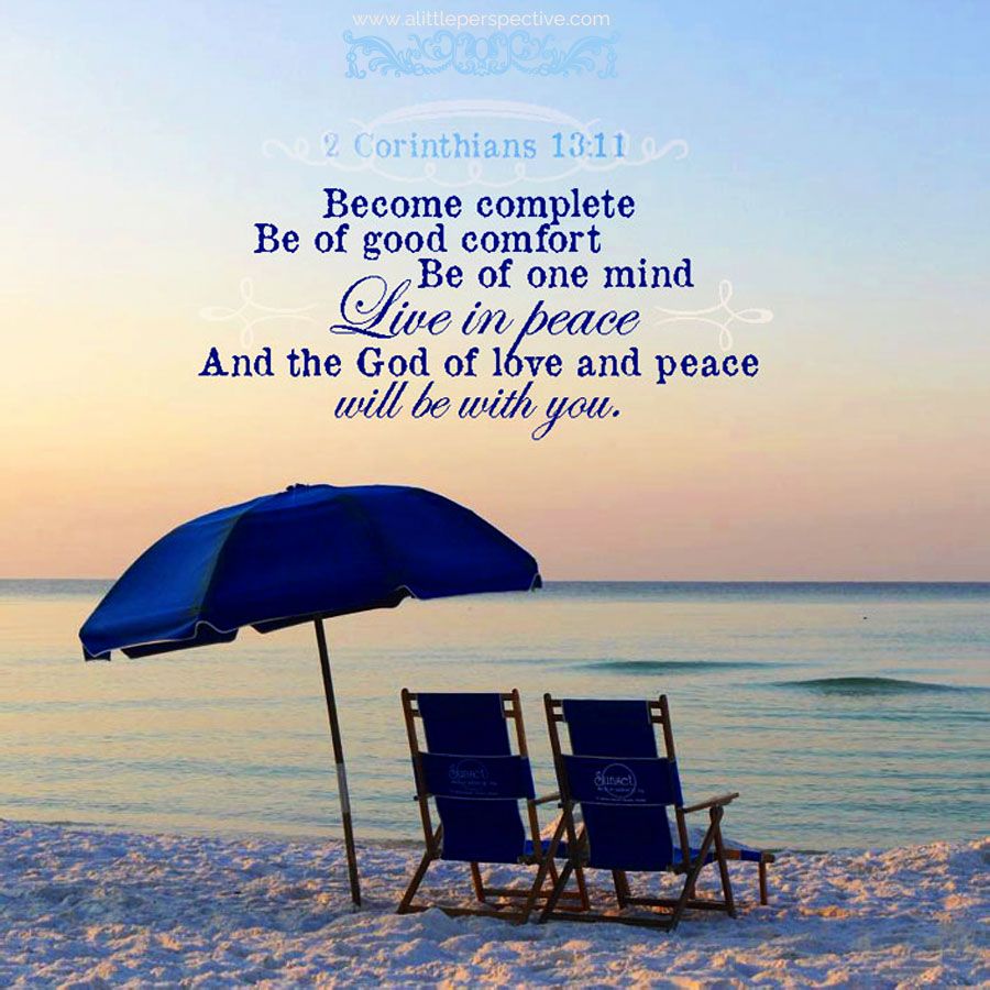 11 Finally, brethren, farewell. Become complete. Be of good comfort, be of one mind, live in peace; and the God of love and peace will be with you.