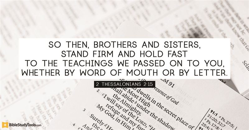 13 But we are bound to give thanks to God always for you, brethren beloved by the Lord, because God from the beginning chose you for salvation through sanctification by the Spirit and belief in the truth, 14 to which He called you by our gospel, for the obtaining of the glory of our Lord Jesus Christ. 15 Therefore, brethren, stand fast and hold the traditions which you were taught, whether by word or our epistle.