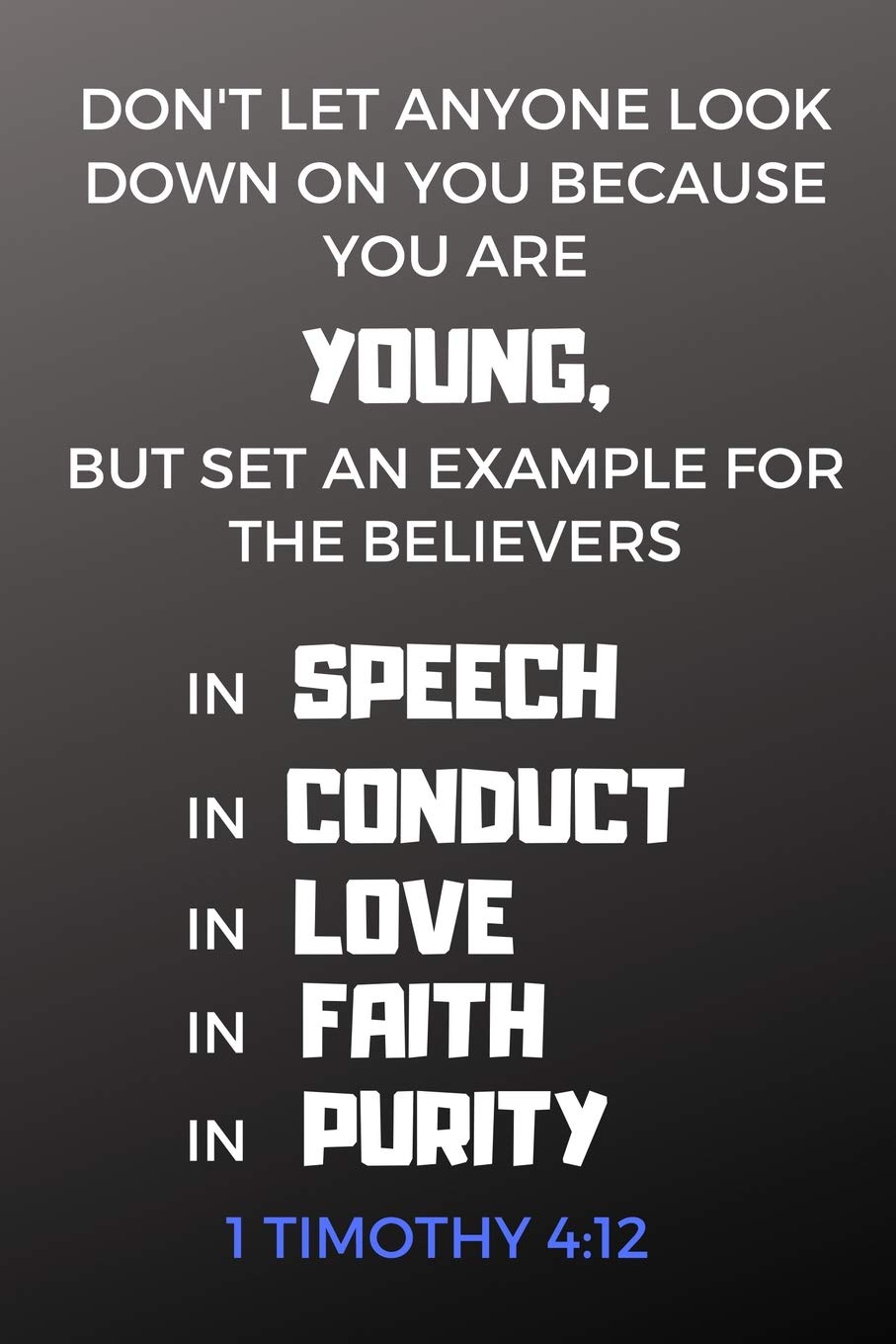 12 Let no one despise your youth, but be an example to the believers in word, in conduct, in love, in spirit, in faith, in purity. 13 Till I come, give attention to reading, to exhortation, to doctrine. 14 Do not neglect the gift that is in you, which was given to you by prophecy with the laying on of the hands of the eldership. 15 Meditate on these things; give yourself entirely to them, that your progress may be evident to all. 16 Take heed to yourself and to the doctrine. Continue in them, for in doing this you will save both yourself and those who hear you.