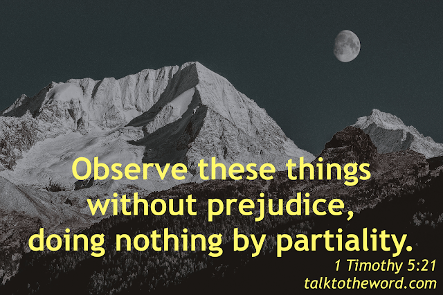 21 I charge you before God and the Lord Jesus Christ and the elect angels that you observe these things without prejudice, doing nothing with partiality. 22 Do not lay hands on anyone hastily, nor share in other people’s sins; keep yourself pure.