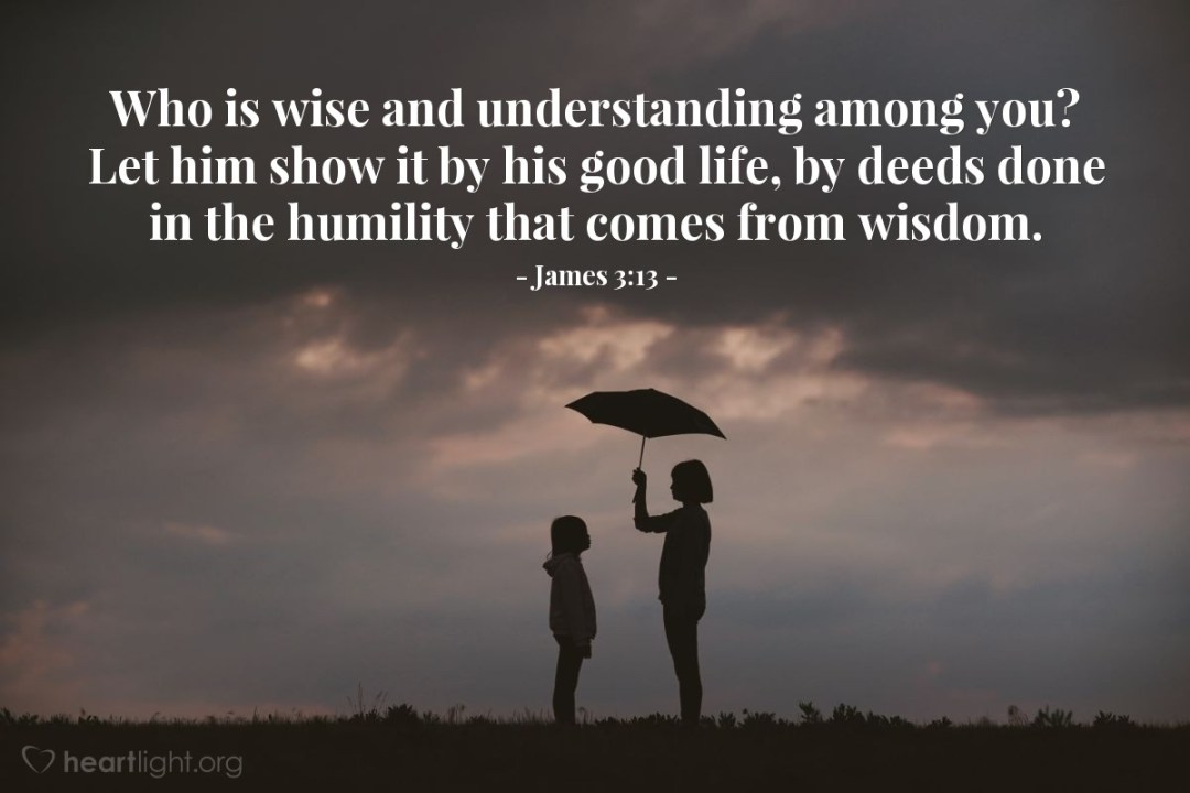After a discussion of the power of the tongue, James moves here into a treatise about the value of wisdom. This is a revisit of the passage in chapter one where he states that anyone desiring wisdom should ask of God. Wisdom is to be desired above riches, as was witnessed in the example of Solomon, who asked God for wisdom, which He supplied, and then Solomon was able to rule well and gain all things. Seek wisdom!