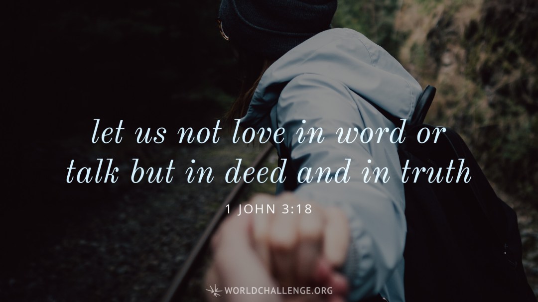John writes that the ends to which God would go for His people are limitless. Jesus actually laid down His life for us at the crucifixion. The sacrifice of one’s life for another is lauded in many Biblical passages as the ultimate example of sacrifice. To take one’s place in execution is a massive ask and a powerful statement all at once. In response to this great sacrifice and payment for other’s sins, God asks for those redeemed to lay down their lives for one another. Jesus had set the example for us, and asks us to do the same. Perhaps we will not have to die for someone else, but we can allow ourselves to be inconvenienced, to be pressed into service, to give money or goods, or to be somehow even put in danger for the sake of another. John speaks specifically of the opportunity to give of our belongings or finances in order to help another. If we do not share our bounty, then John says that the love of God does not abide within us. Be givers of the love of God through your assistance and your sacrifice.