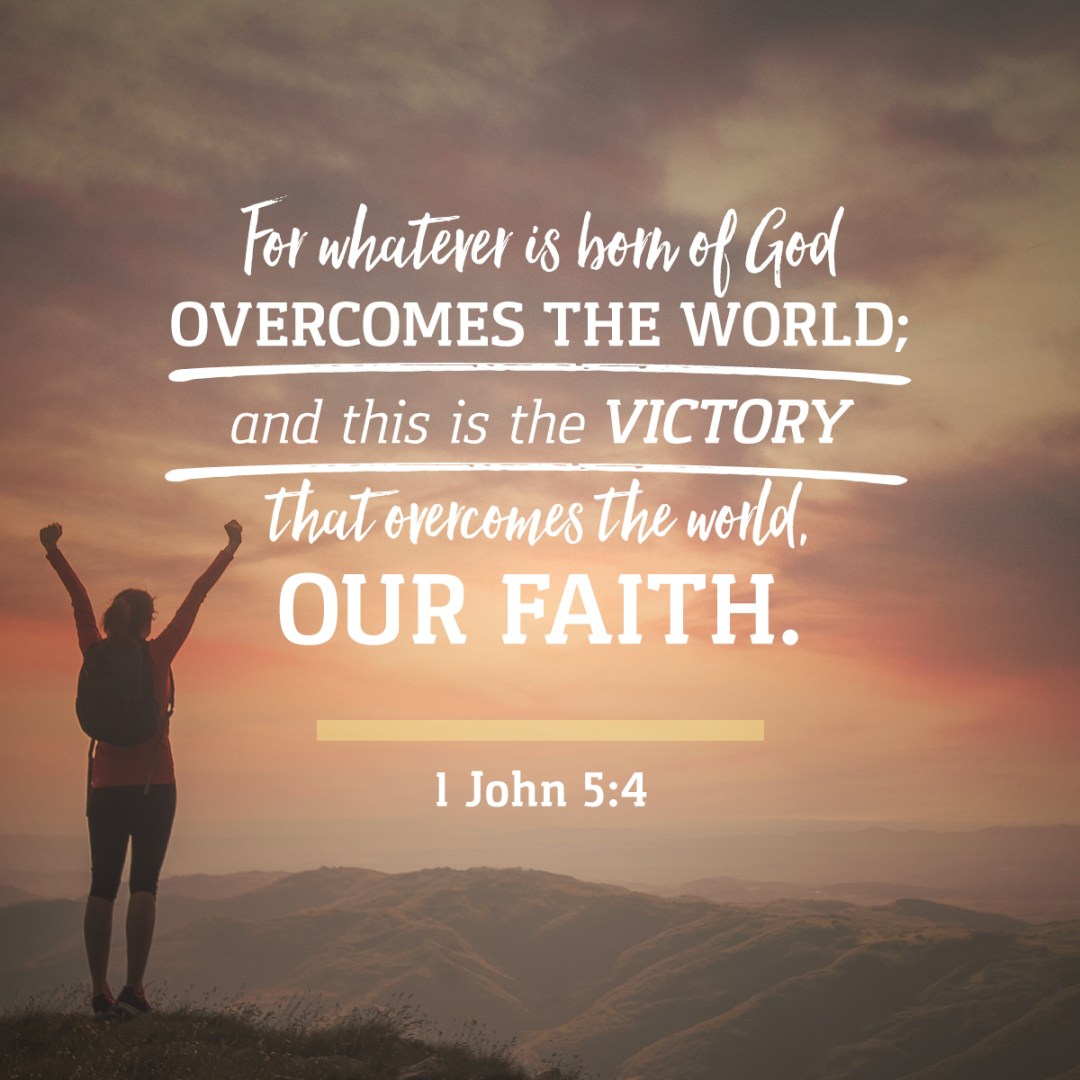 1 Whoever believes that Jesus is the Christ is born of God, and everyone who loves Him who begot also loves him who is begotten of Him. 2 By this we know that we love the children of God, when we love God and keep His commandments. 3 For this is the love of God, that we keep His commandments. And His commandments are not burdensome. 4 For whatever is born of God overcomes the world. And this is the victory that has overcome the world—our faith. 5 Who is he who overcomes the world, but he who believes that Jesus is the Son of God?