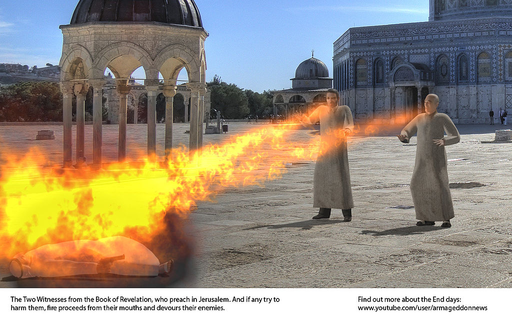 Artwork from https://jmichaelrios.files.wordpress.com/2014/02/two_witnesses_-_book_of_revelation.jpg AND https://upload.wikimedia.org/wikipedia/commons/9/92/BambergApocalypseFolio027v2ProphetsAndBeastFromAbyss.JPG