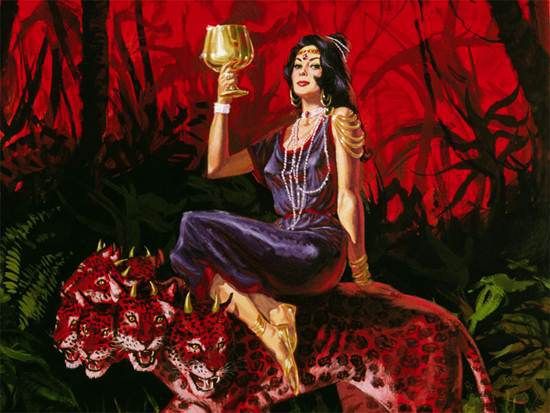 3 So he carried me away in the Spirit into the wilderness. And I saw a woman sitting on a scarlet beast which was full of names of blasphemy, having seven heads and ten horns. 4 The woman was arrayed in purple and scarlet, and adorned with gold and precious stones and pearls, having in her hand a golden cup full of abominations and the filthiness of her fornication. 5 And on her forehead a name was written: