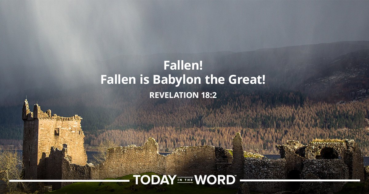1 After these things I saw another angel coming down from heaven, having great authority, and the earth was illuminated with his glory. 2 And he cried mightily with a loud voice, saying, “Babylon the great is fallen, is fallen, and has become a dwelling place of demons, a prison for every foul spirit, and a cage for every unclean and hated bird! 3 For all the nations have drunk of the wine of the wrath of her fornication, the kings of the earth have committed fornication with her, and the merchants of the earth have become rich through the abundance of her luxury.”