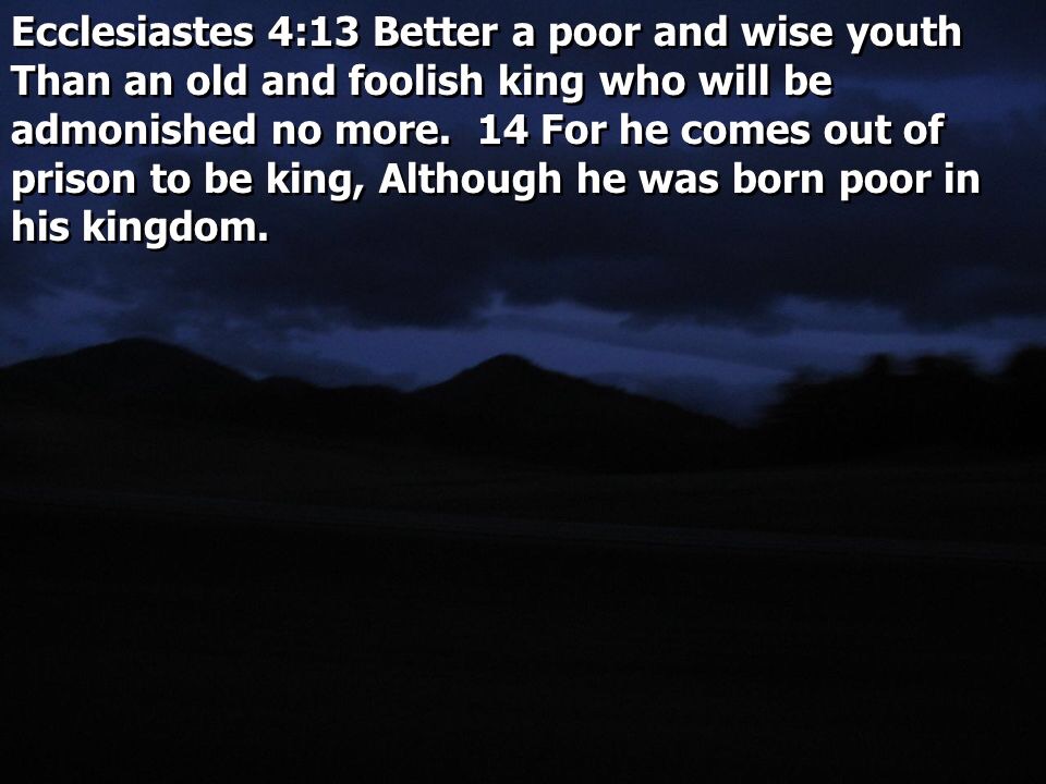Ecclesiastes 4:13–16 (NKJV) 13 Better a poor and wise youth Than an old and foolish king who will be admonished no more. 14 For he comes out of prison to be king, Although he was born poor in his kingdom. 15 I saw all the living who walk under the sun; They were with the … Continue reading Never Stop Learning